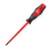 • Для работ под напряжением до 1000 В • Материал стержня: хром-ванадиевая сталь • Материал изоляции стержня: полипропилен • Двухкомпонентная эргономичная рукоятка с мягкими вставками из термопластрезины • Маркировка на торце рукояток с обозначением типа профиля • Специальная форма рукоятки, не позволяющая инструменту скатываться с наклонной поверхности • Намагниченные вороненые наконечники • Упаковка: пластиковый холдер